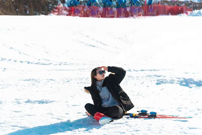 滑雪难免会摔的,但是摔倒的时候不要用手直接撑地,身体也不要翻滚。最好是向斜后方坐下,然后双手摆到身体两侧,这时候雪板脱落反而更安全,要是扭伤膝盖就太痛苦了。