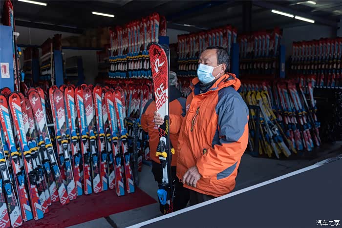 从大叔那里领雪板和雪仗~