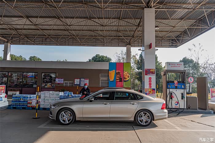 上高速前先加油,这台车虽然很大,但是油耗还好,现在稳定在9升左右,可以接受。