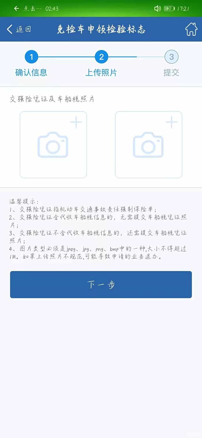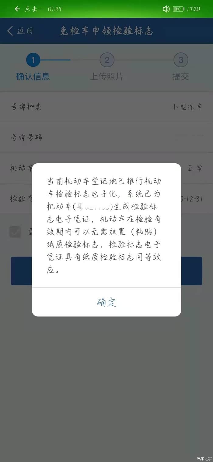 点击免检车标领取。可以选择要纸质也可以选择不要纸质。