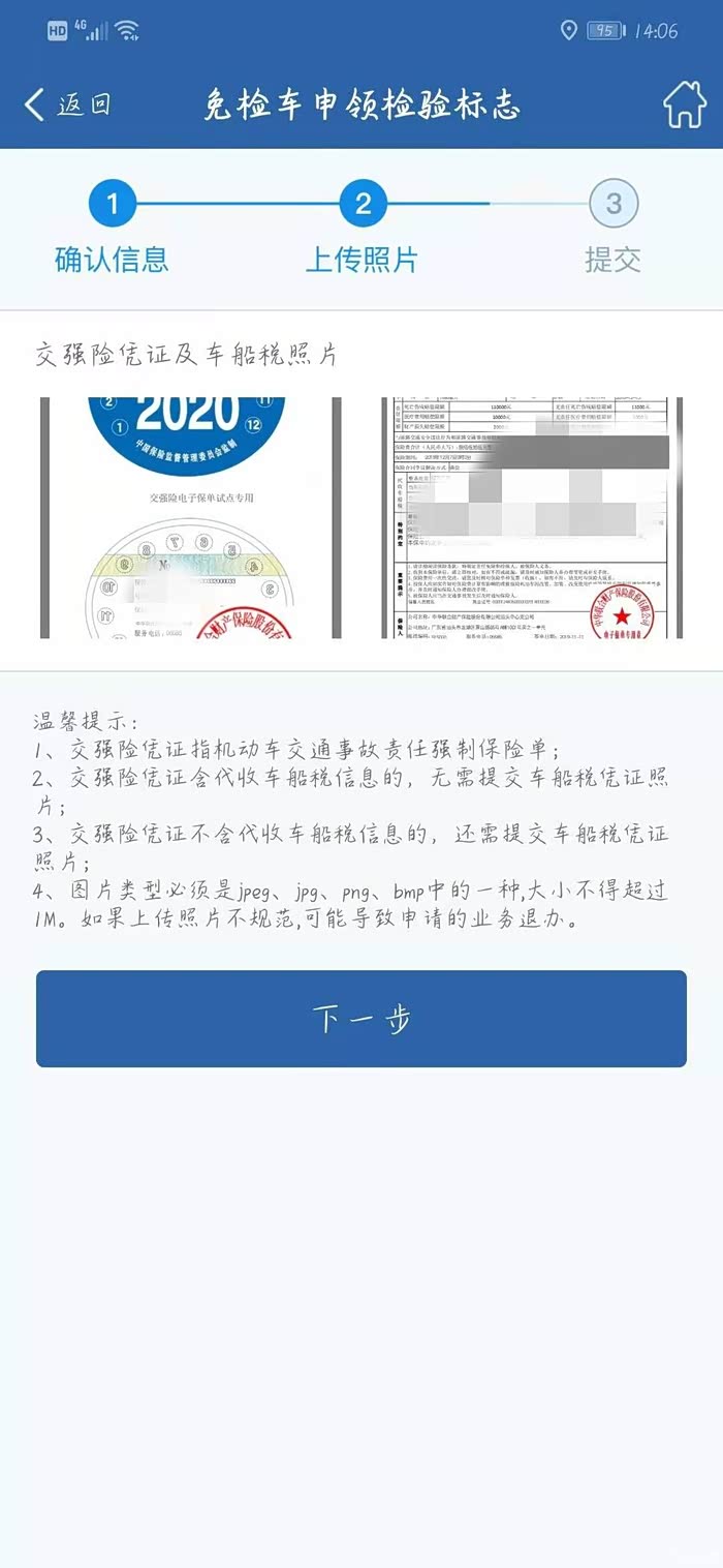 上传保险单。