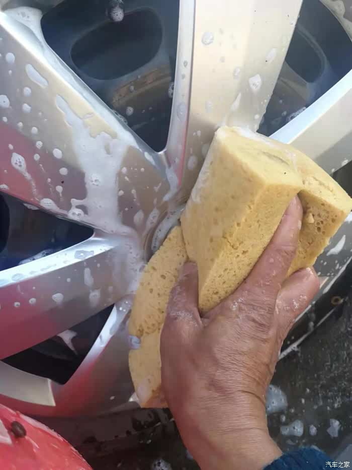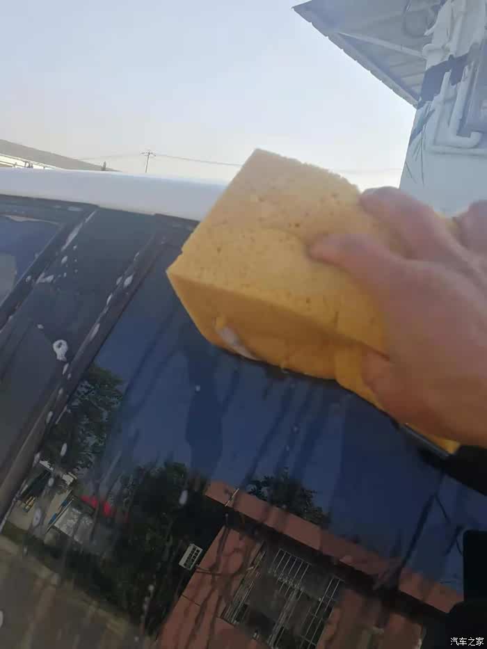 海绵洗车的好处是含水量大,毛巾用来擦水