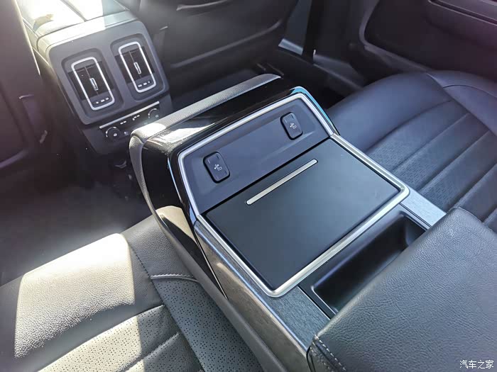 C6宽大的横向空间,让这个厚实的后排中央扶手显得十分搭调,并且后排座椅的坐垫也很长,再加上后排靠背支持电动角度调节,配上后排双区自动空调,这车坐起来给人感觉就像趟在家里一样,让人身体上非常放松。