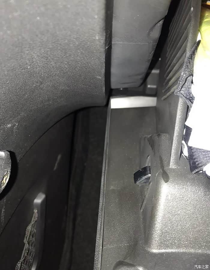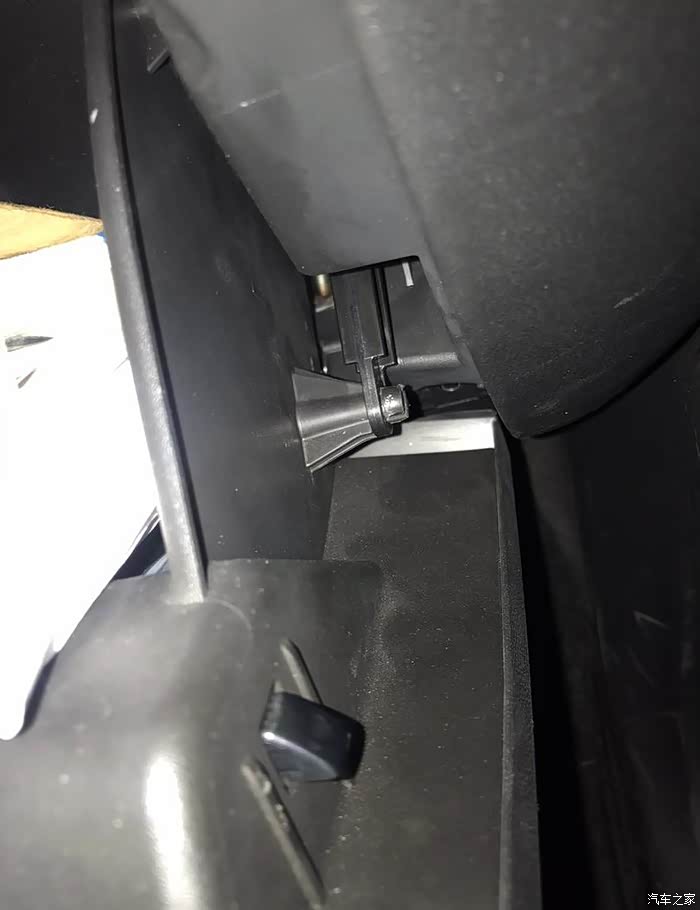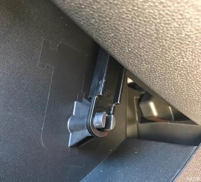 然后手套箱上侧左右两边有两个卡扣。外面看不见手进去摸,轻轻一掰就下来了。