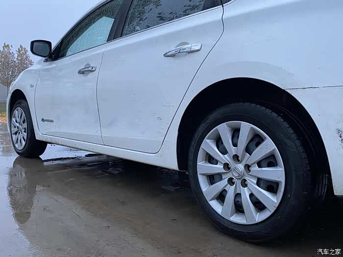 舒适版本的车辆轮毂是钢制轮毂,外面配有轮毂罩,看起来温温和和,跟小轩轩舒适的属性还挺搭的。