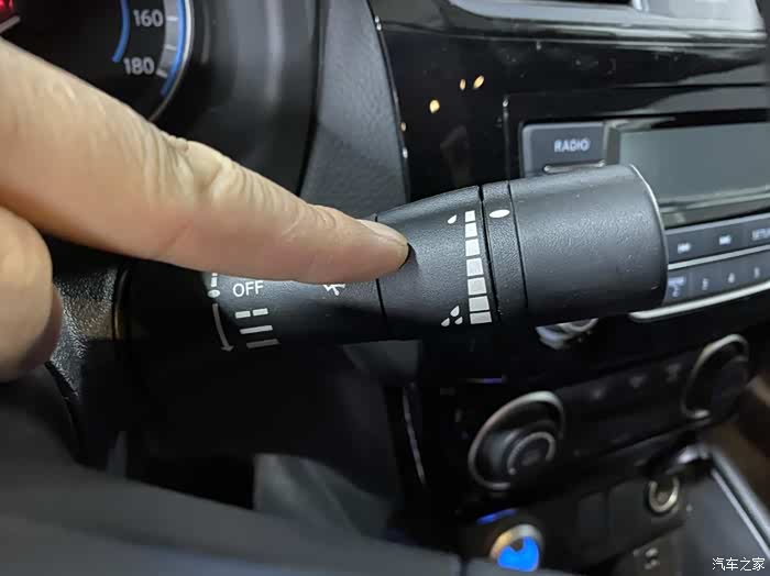 这个旋钮是在使用雨刮器的时候,可以根据自己的实际雨量情况调整快慢。