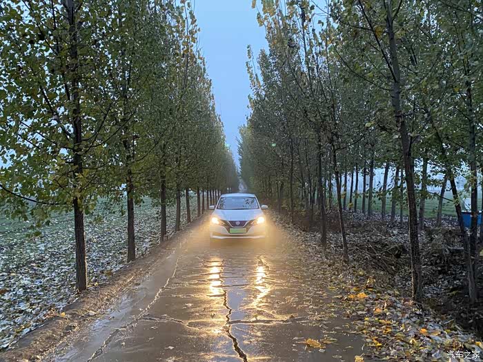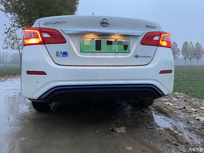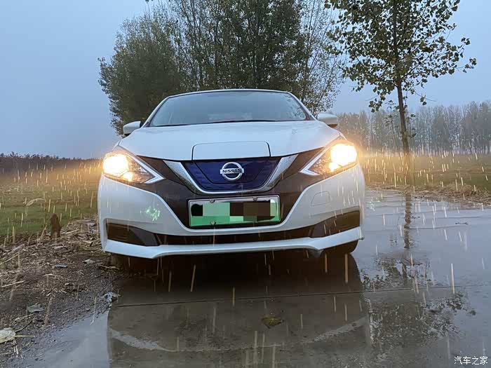 冬雨中的日产的车标,有它多年来在电动汽车的技术沉淀,我对小轩轩的质量很放心!
