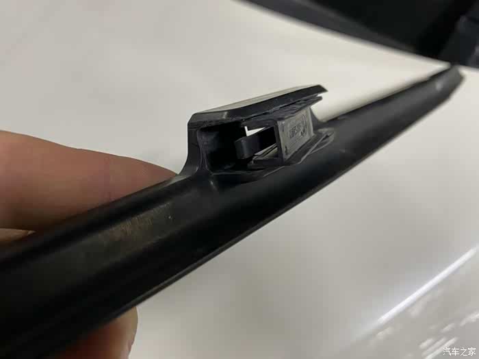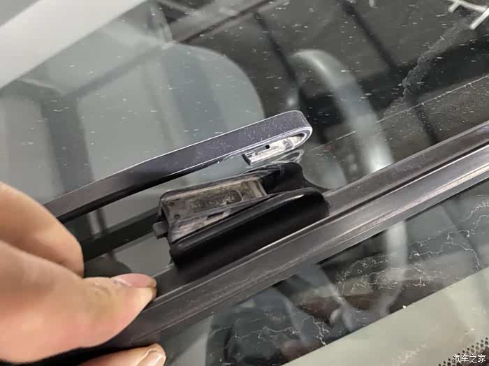 雨刮片和雨刮臂是靠锁扣连接的,上面有突出的卡片,轻轻一压然后往下一拉雨刮片就和雨刮臂分离了。