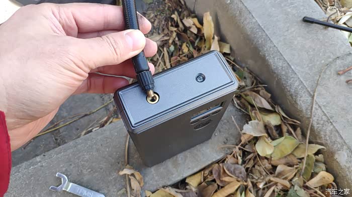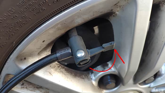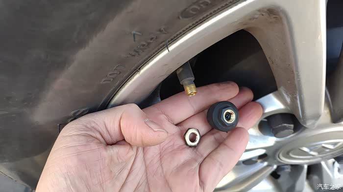 之前加装了外置式胎压检测仪,充气前要先卸掉。