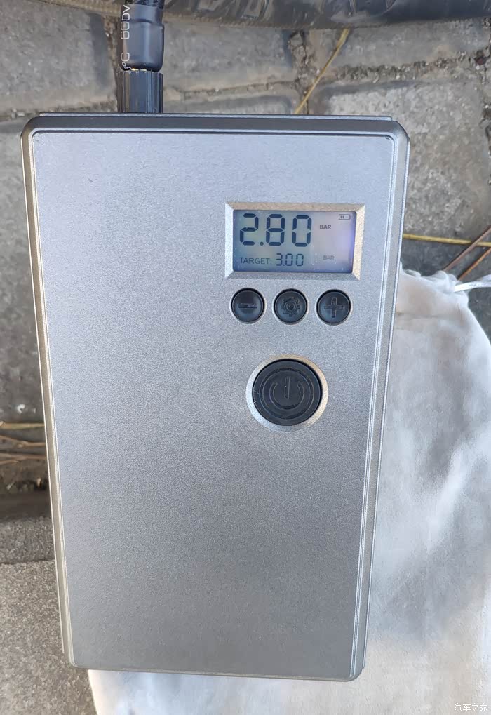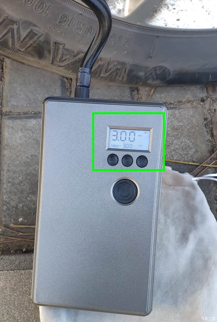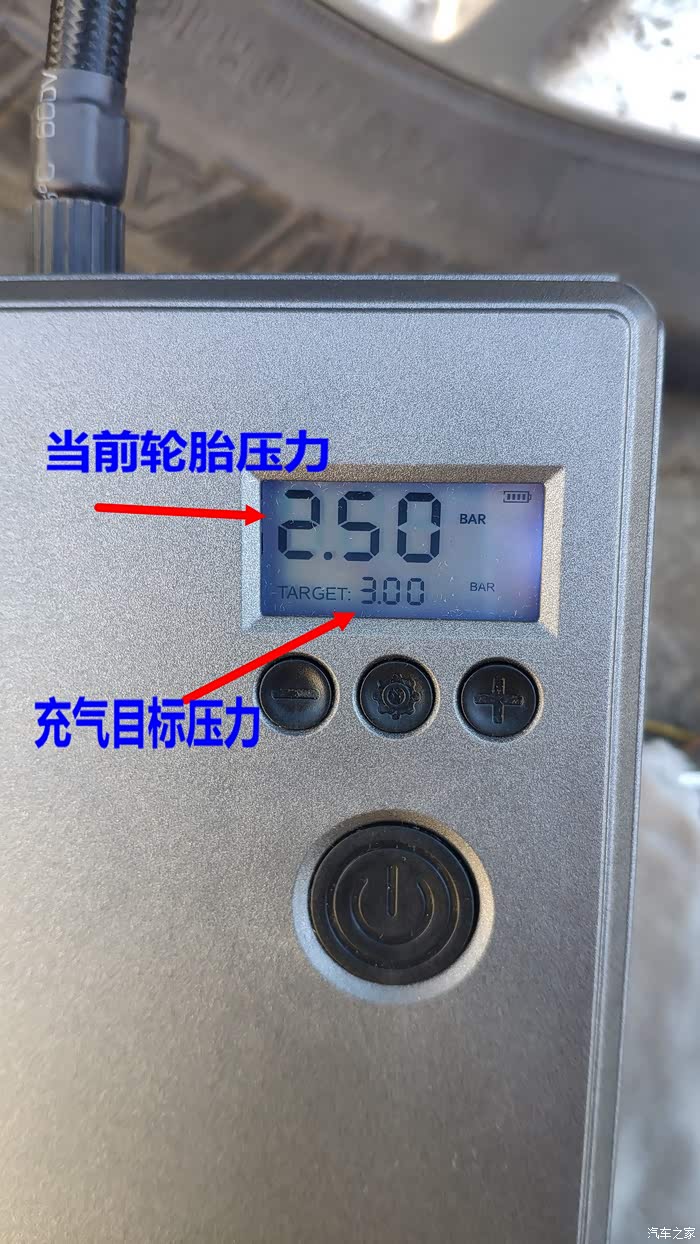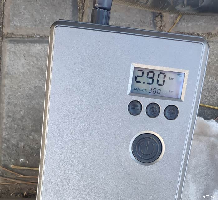 之前已设置充气目标值压力3.0Bar。打开充气泵,可以看到目前轮胎压力,和这个目标值3.0。
