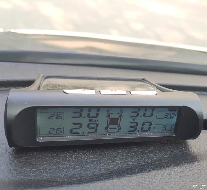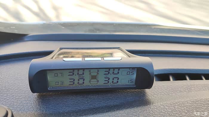 重新启动胎压监测仪主机,可以看到四个轮胎压力都为3.0!
