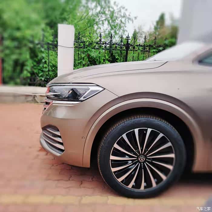 院子里停放的是金色的,感觉没有外面银色的好,大众家族式设计,依然很霸气