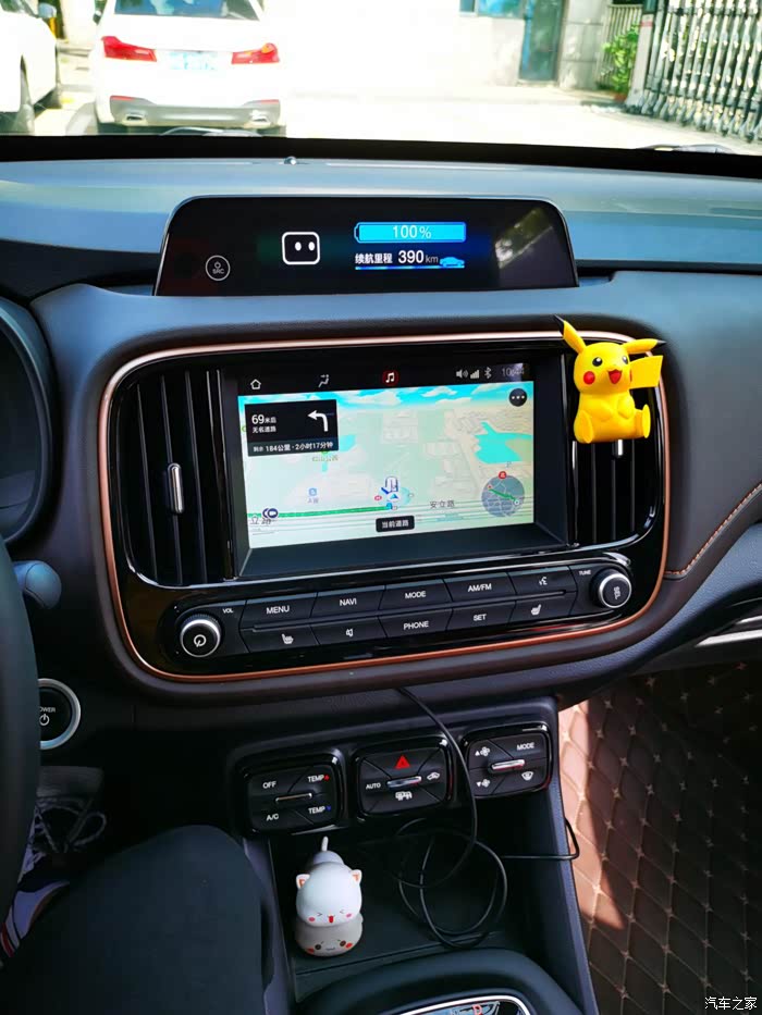 为什么说是最艰难的245公里呢?因为过了景家山服务区以后,高速上就一个充电站都没有了,所以至少要预留出50-100KM的续航电量,以备如果开不到市区采取备用方案。后半段路程开始会逐渐爬升至1500米左右的海拔,然后慢慢降回到1000米,所以开始的路程比较费电,从服务区出发时,我的电耗是28千瓦时/百公里,吓了我一跳,就看续航嗖嗖的往下掉,前50公里路程掉了近100公里续航,而且我开的也不快,一路都使用定速巡航保持在100公里/小时的速度,在只剩300公里续航时我果断开启了ECO省电模式,电耗这才一点点掉下来,经过3小时的枯燥旅途,终于开到了呼和浩特市,一进市区便下起了大雨,室外温度只有3度,可喜的是我的续航还有70公里,电耗也只有11.8千瓦时/百公里,剩下的就是熬过下班下雨的堵车,回家吃一碗热乎乎的饭了。