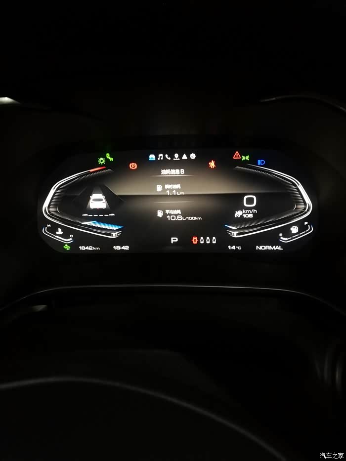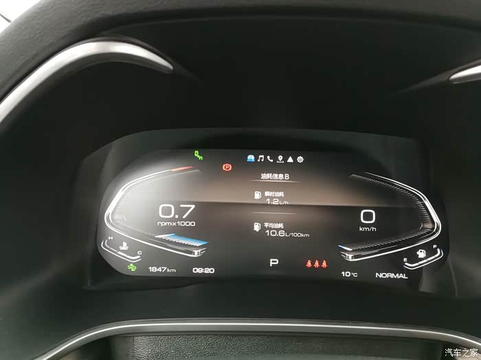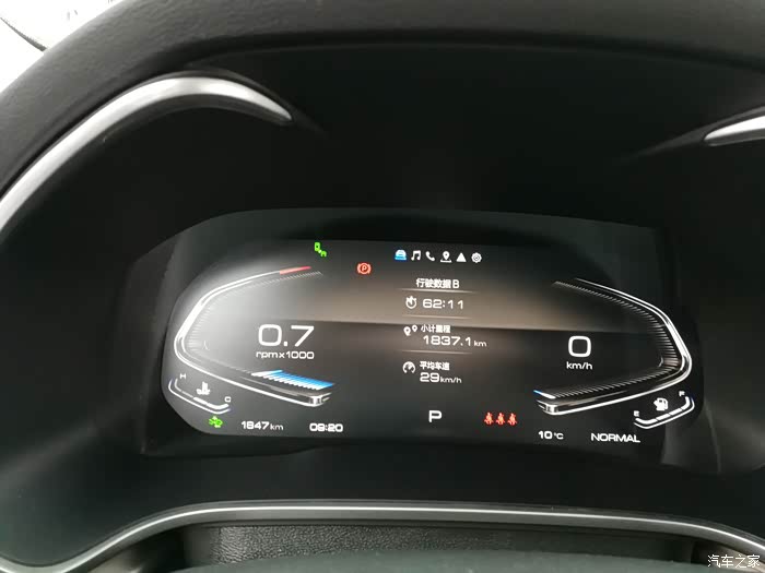 当前里程1847km(含提车时的10km),实际行驶1837km,表显平均油耗10.6(提车后未作清零),均速29。