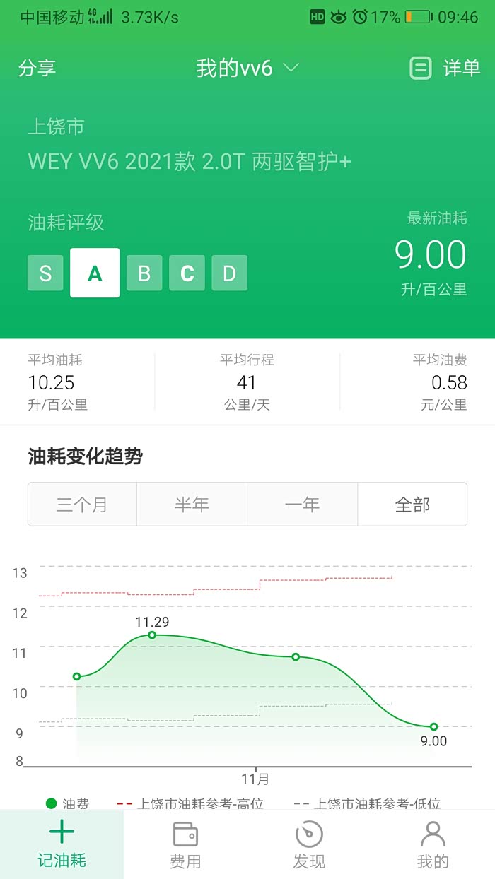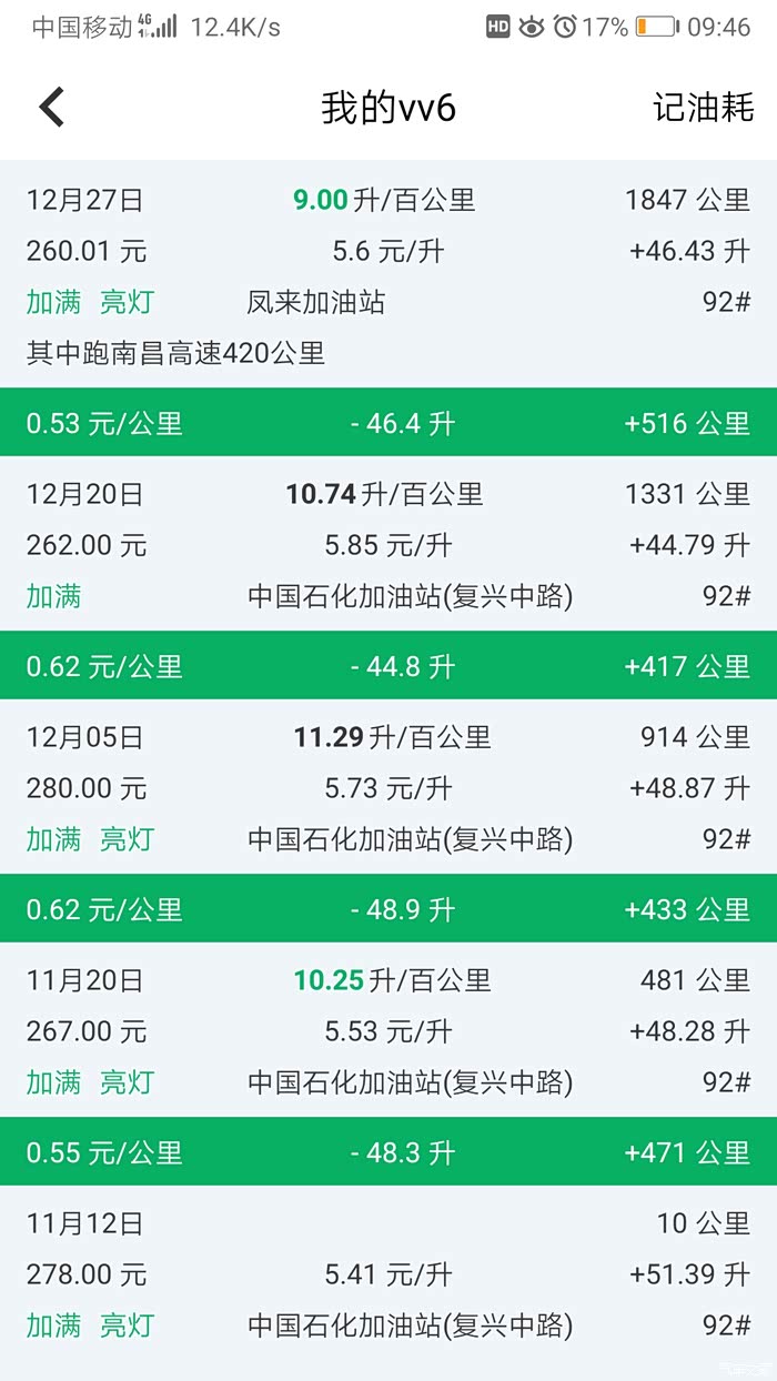 本人居住江西,最近气温降得厉害,感觉上下班冷车驾驶比之前更耗油。此外,本人全程使用标准驾驶模式,驾驶不会很暴力,但也不会为了节油不去抢道、抢灯,在男性中属于中等水平的驾驶行为。