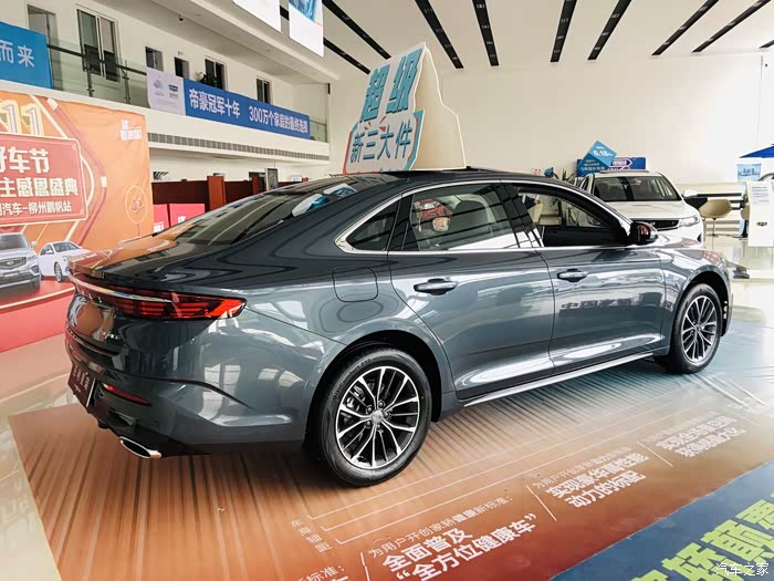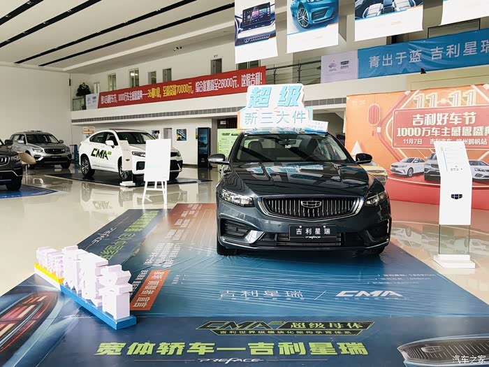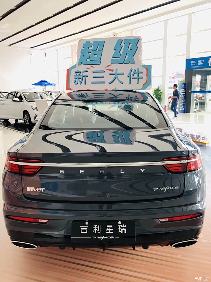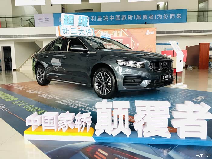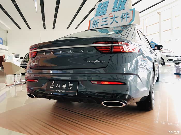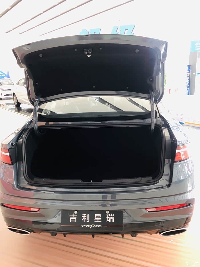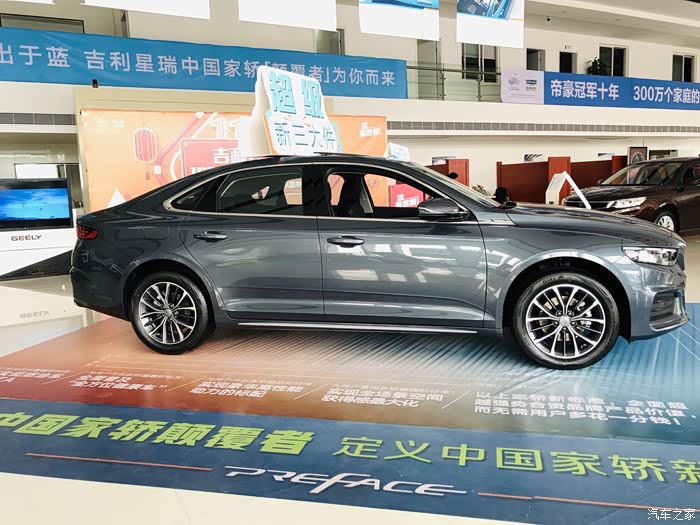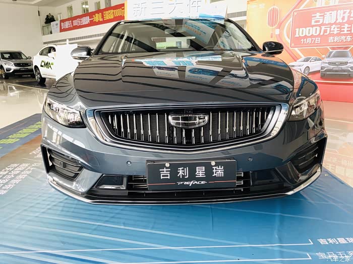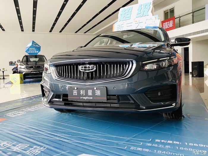 首先映入眼帘的就是吉利星瑞了,展厅摆放的颜色是玄武灰。