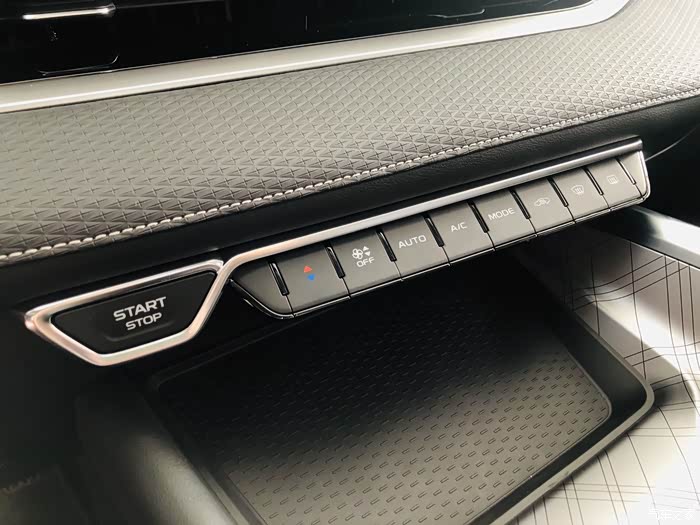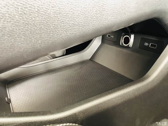 中控下面还有一个置物架、点烟器、USB接口,这样使用起来不会显得很凌乱,手机充电也可以放在这里,一举两得。