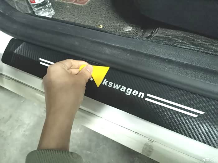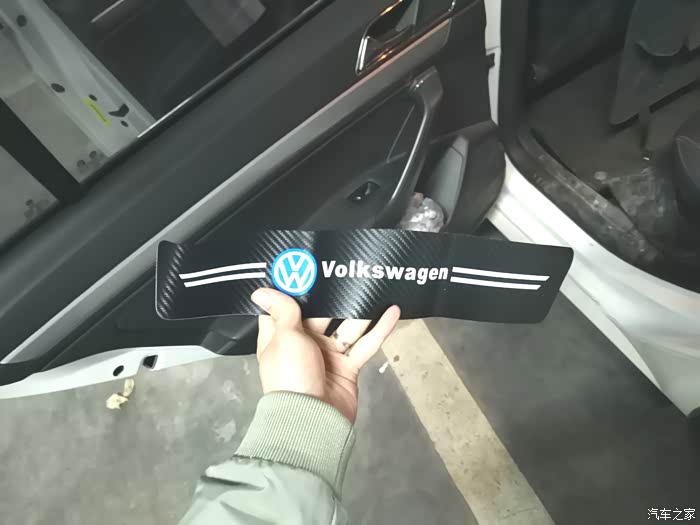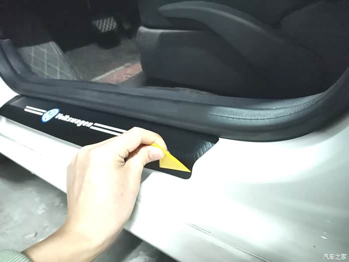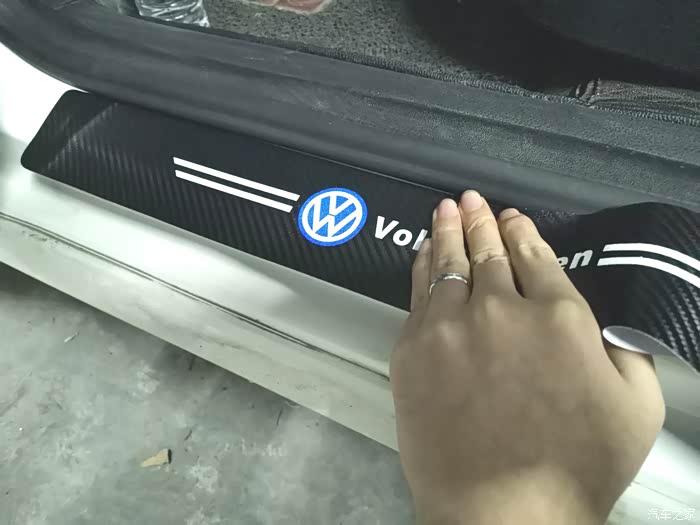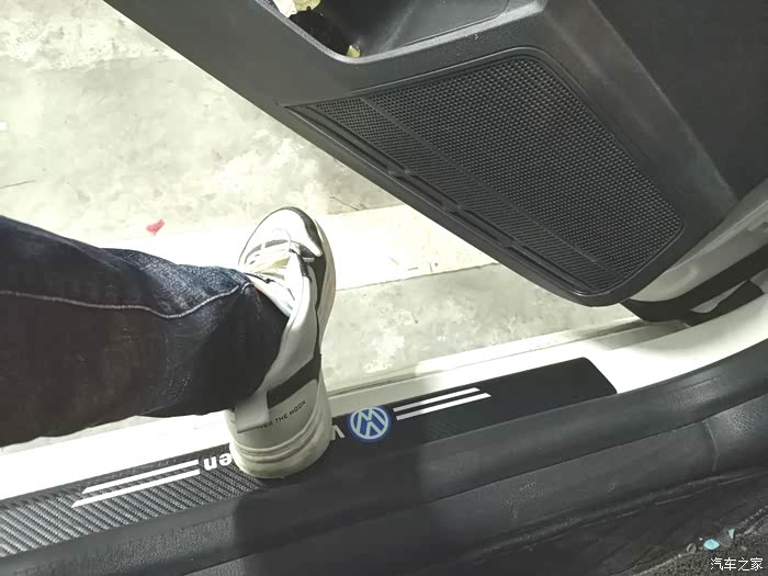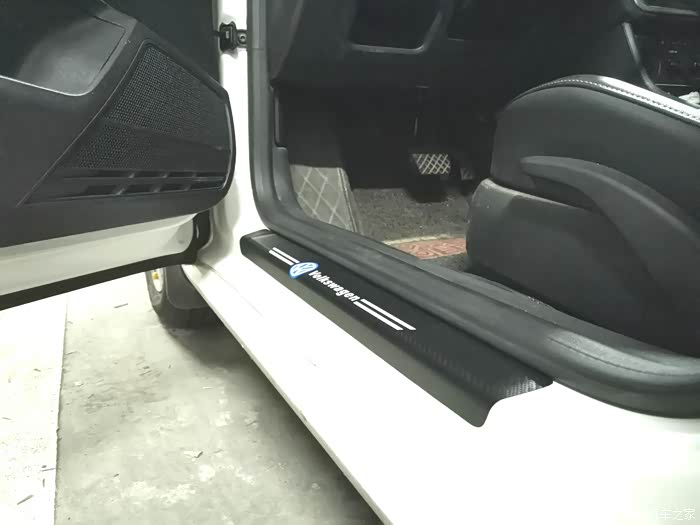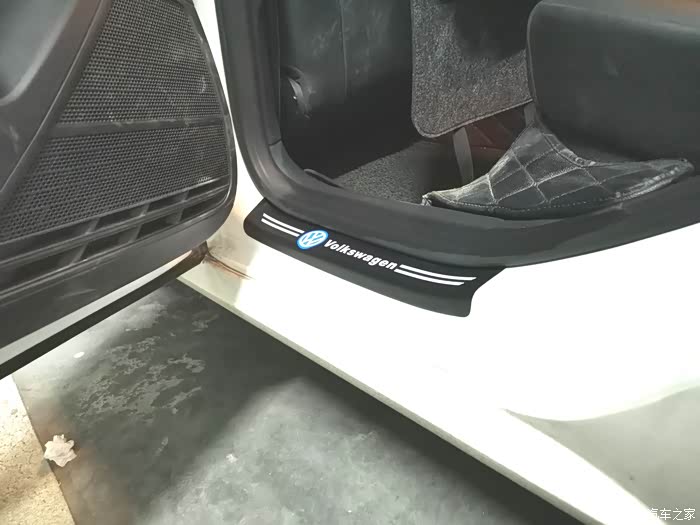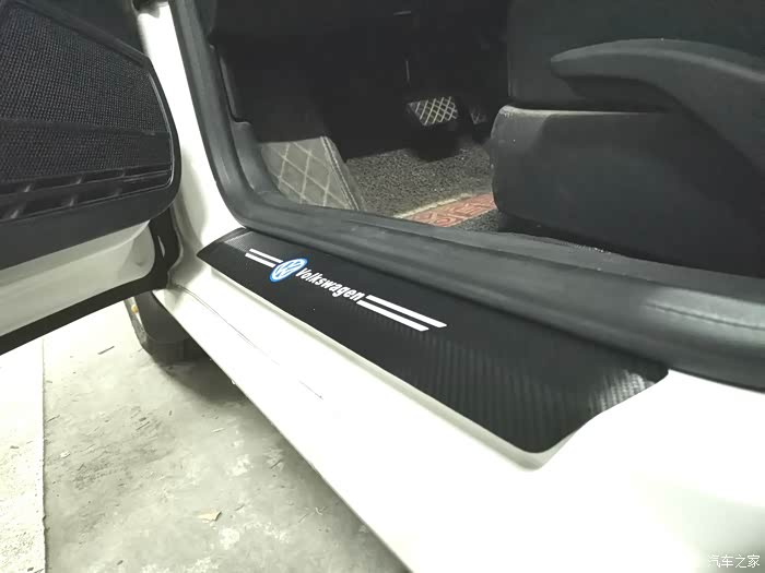 完全安装好的样子,不仅可以保护门槛而且有大众的LOG,看起来很上档次。