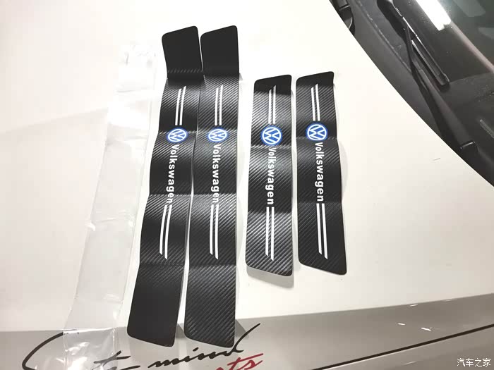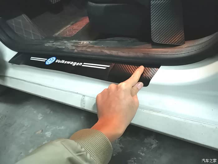 心想着要买一个大一点的防护条,但是要把原车的拆下来又有点舍不得,选来选去最终找到了一款碳纤维的门槛防护垫。