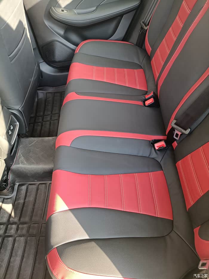 内饰设计的话,只要是以黑红颜色为基调,摸上去手感不是很糙,不过皮质不是真皮的就是仿皮的座椅,空间方面还是很大的,座椅也都以进行自动调节,并且坐在车里视觉效果也好。