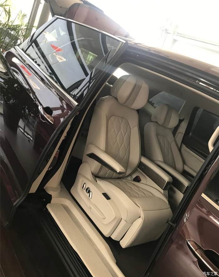 车内的空间也很大了。前排座椅空间巨大,而且还有双扶手。第二排看起来比前座还舒服啊,妥妥的VIP。啊哈,第三排忘记拍了,不过后备箱挺大的,宜家宜商。进驾驶室体验一番,由于体型较小,现在从外面看上去,估计变成无人驾驶了。方向盘真皮的,摸起来太舒服了,全皮质包裹。加厚的浅色内饰板配上镀铬饰条,彰显高贵。整体车身内部以浅色为主,给人以轻松愉悦的感觉。精质的座椅调节按钮,细质入微。超大的出风口和灯光控制开关布局合理。触摸屏,操控起来更加简单灵敏。
