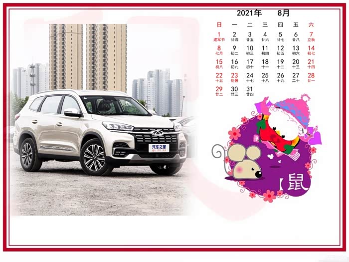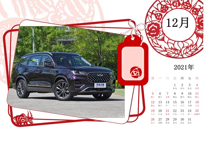 新年新气象,一组奇瑞虎八和虎八普拉斯车图制作的精美桌面日历分享给各位。