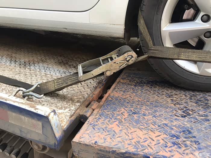 等待了40分钟,拖车终于到了现场,庆幸的是没有碰到第三方,也算是幸运吧,上好挂钩,准备拖车!