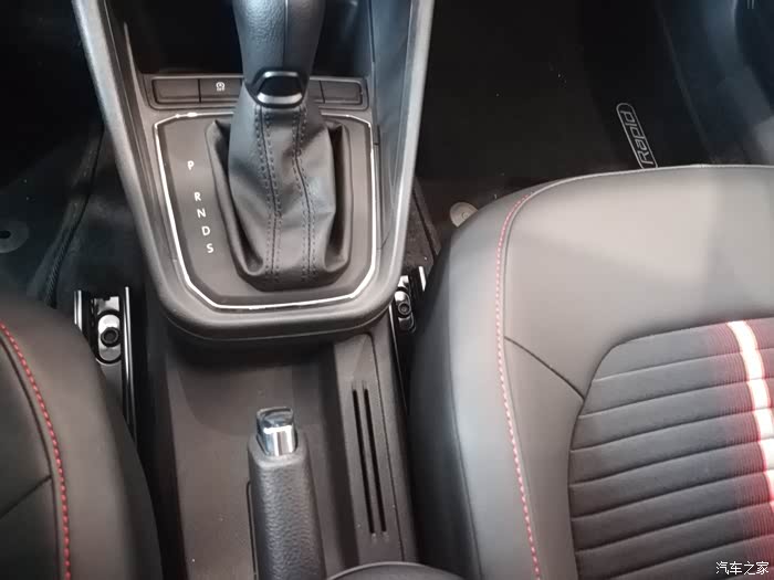 中控台还是传统的大众风格,中规中矩,黑色内饰镶嵌着红色的装饰条,让车内空间显得活泼。方向盘带有多功能按钮,满足日常操作需求。座椅采用织物与皮革相拼。