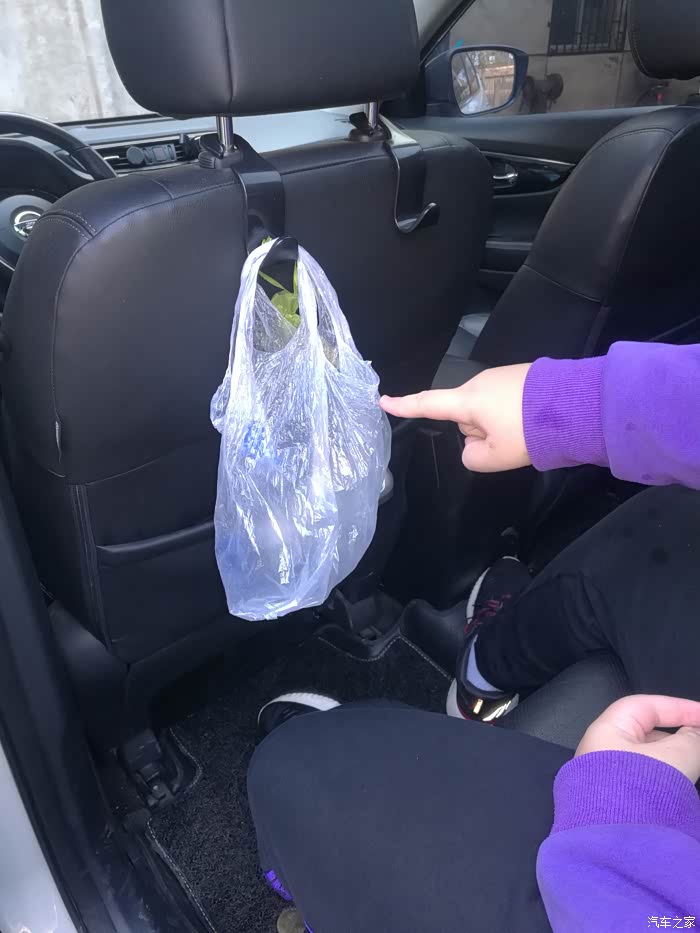 有了车用垃圾桶后,很方便的挂到座椅后袋上,黑银搭配立显高大上。