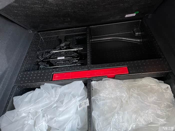 后备箱下面还有四个储物格,放放工具箱杂物一些不太使用的物品刚好,储物格下面就是备胎了