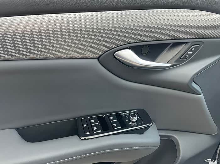 凡是手能触及的地方都是皮质包裹,非常舒服,门把上还用了银色装饰条,质感出色