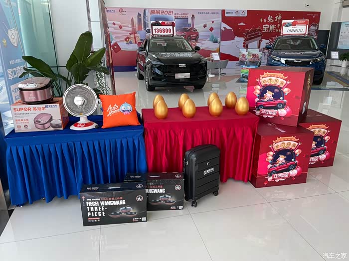 店里元旦的气氛看着很喜庆,红车周围也围着客户