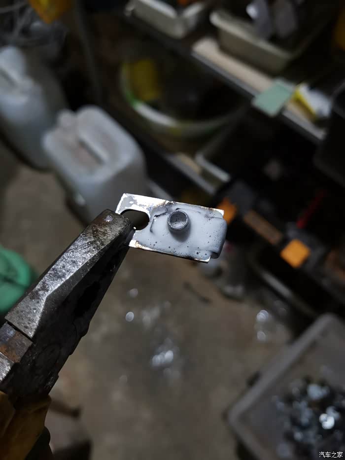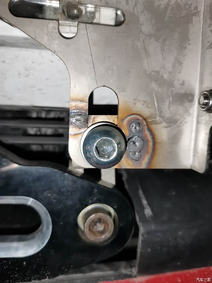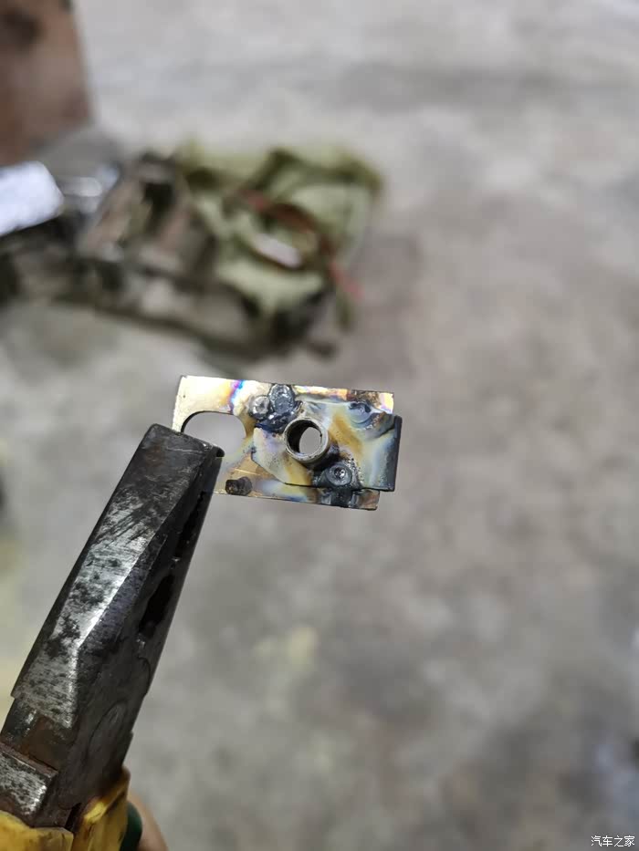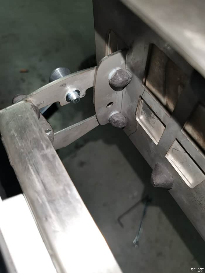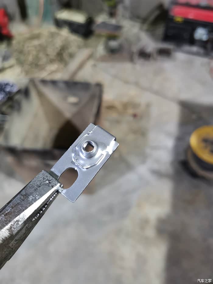 利用废料和割掉前杠上的卡式螺母做成一个连接件!并且焊接在一起。
