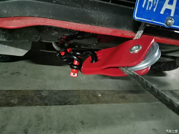 借助钩扣及滑轮变向,绞盘也能在不移动牌照的情况下使用,这算是能完美合规合法解释一切了!
