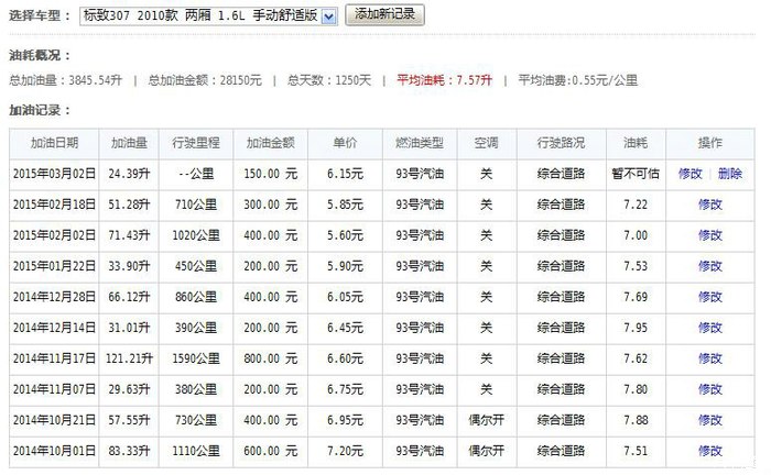 到二月底,我的307两厢1.6手动舒适版用车整三年,三年里行驶了50480公里。