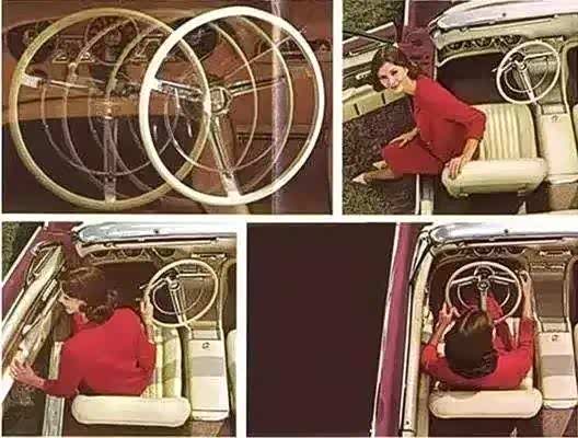1961年的时候,福特雷鸟就有了一个“舒适进出”功能,也就是方向盘是可移动,只不过没有跑到副驾去,就偏移了一定角度,似乎并没有被量产。