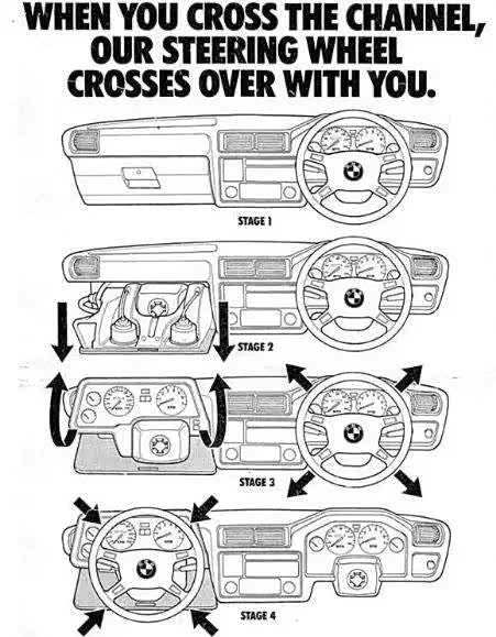 在这个世界上,方向盘一般只有两个位置,一个是左舵,一个是右舵。要是靠右行驶的车辆,开到了靠左行驶的国家怎么办?1994年宝马工程师就有了一个大胆的想法,设计了可以随时切换左、右舵的方向盘。