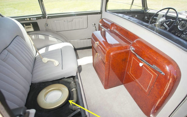 开车远行最好备上脉动瓶?1954年的劳斯劳斯SilverWraithLWBSpecialSaloonbyVignale,全世界只有一台,谁会想到这车的后排还配了个马桶!按照劳斯莱斯的惯性,那一圈泛黄的涂层怕是镀金的吧?PS:果然“有钱人”吃得多,那啥的也多。