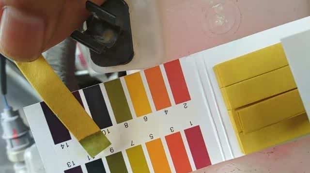 其次就是用PH试纸检测防冻液的PH值,防冻液里的抗腐蚀成分一般都是一些有机盐类物质,其溶液呈弱碱性,所以防冻液基本上都是碱性的。随着抗腐蚀成分的消耗,防冻液的PH值会逐渐减小,呈酸性。这时候就可以考虑更换了。