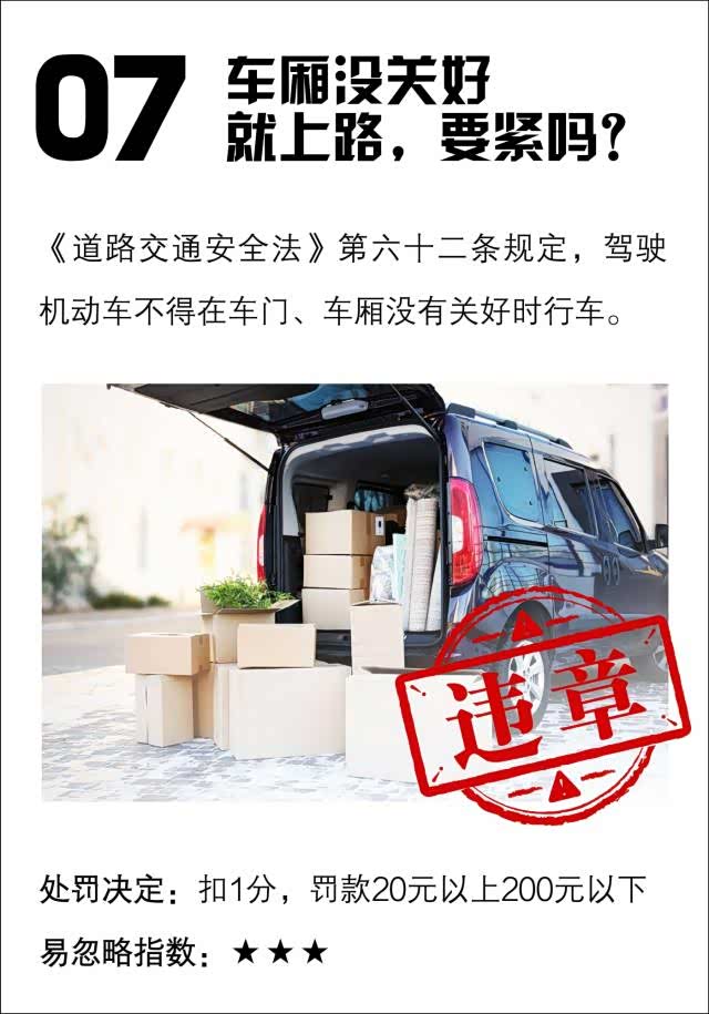 路上偶尔会看到别人后备箱没关好的情况,有时候自己也会用车厢装载大件货物,甚至车厢没关上也依旧驾车行驶。行车中未关闭的车厢门其实是很危险的,不仅牺牲了本车正后方的视野,而且装载物品也有被甩出车外的危险。