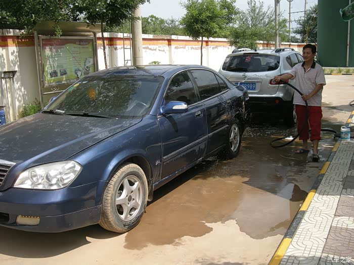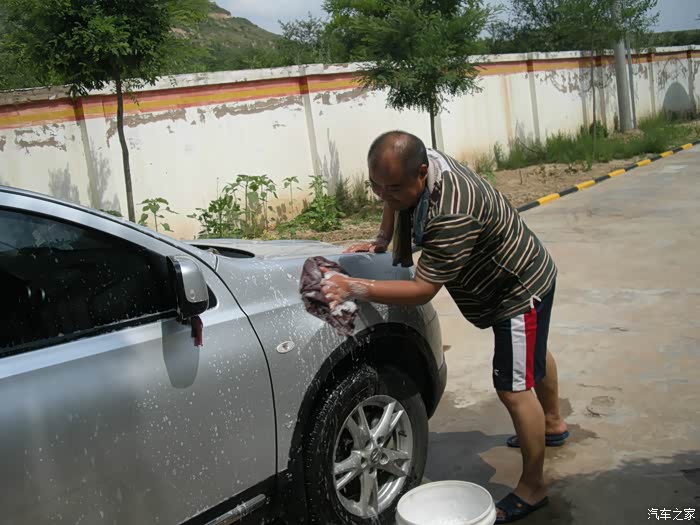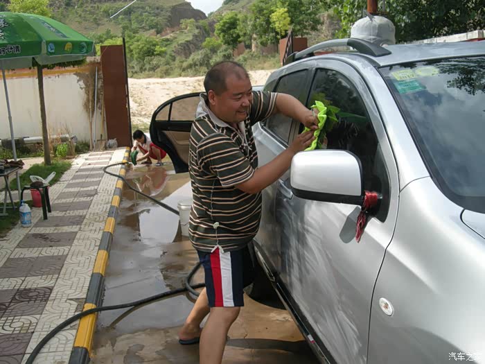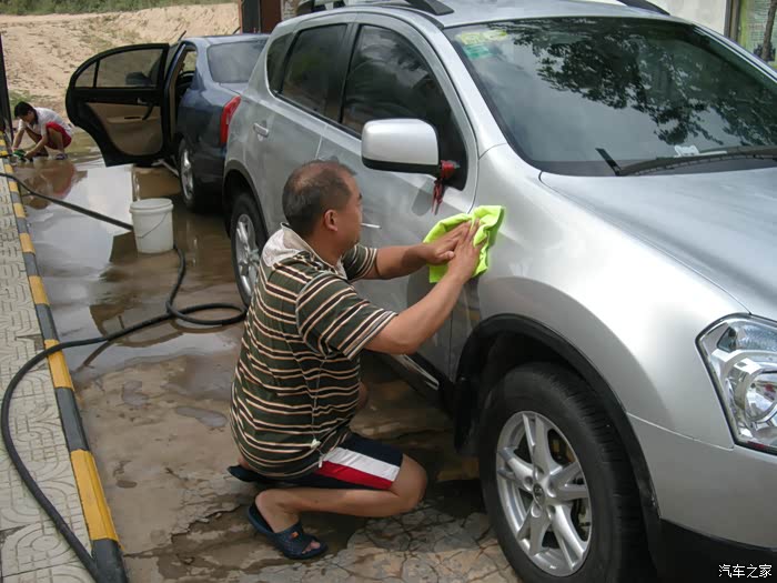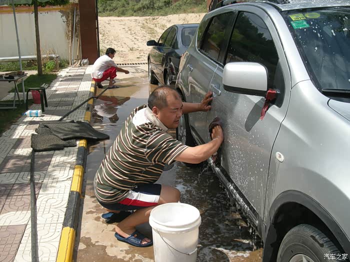 一群男人洗车打蜡,上图