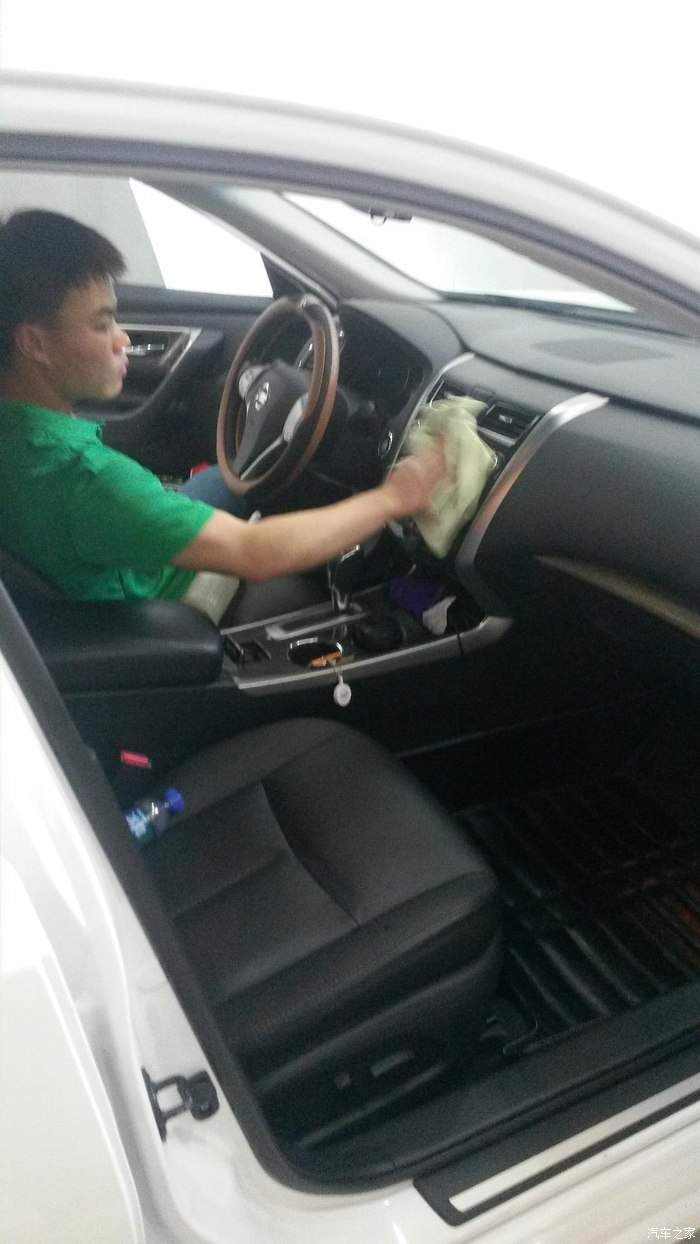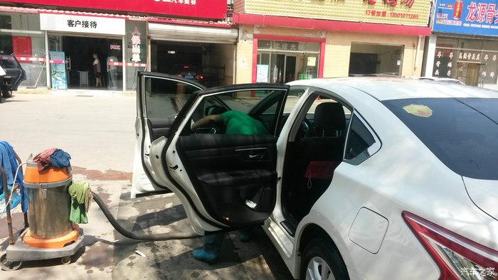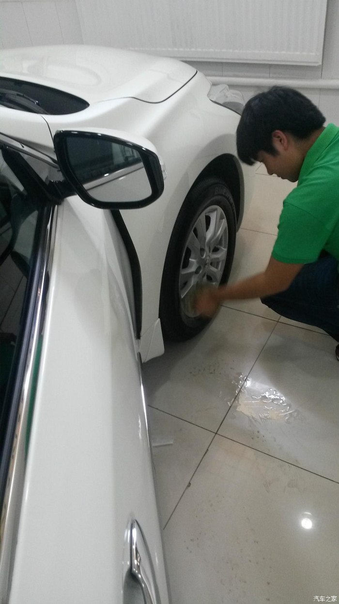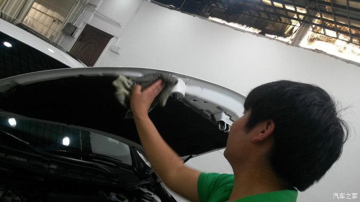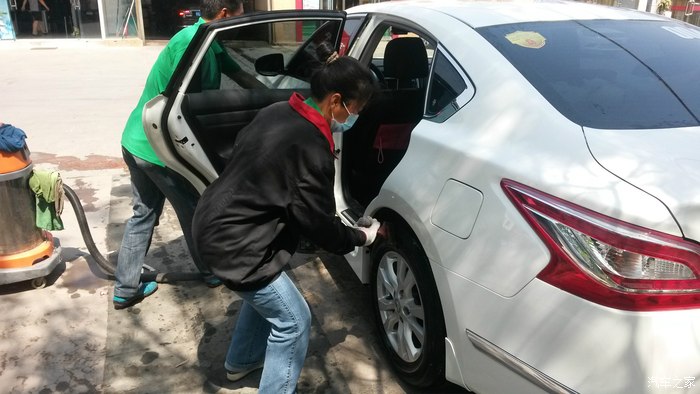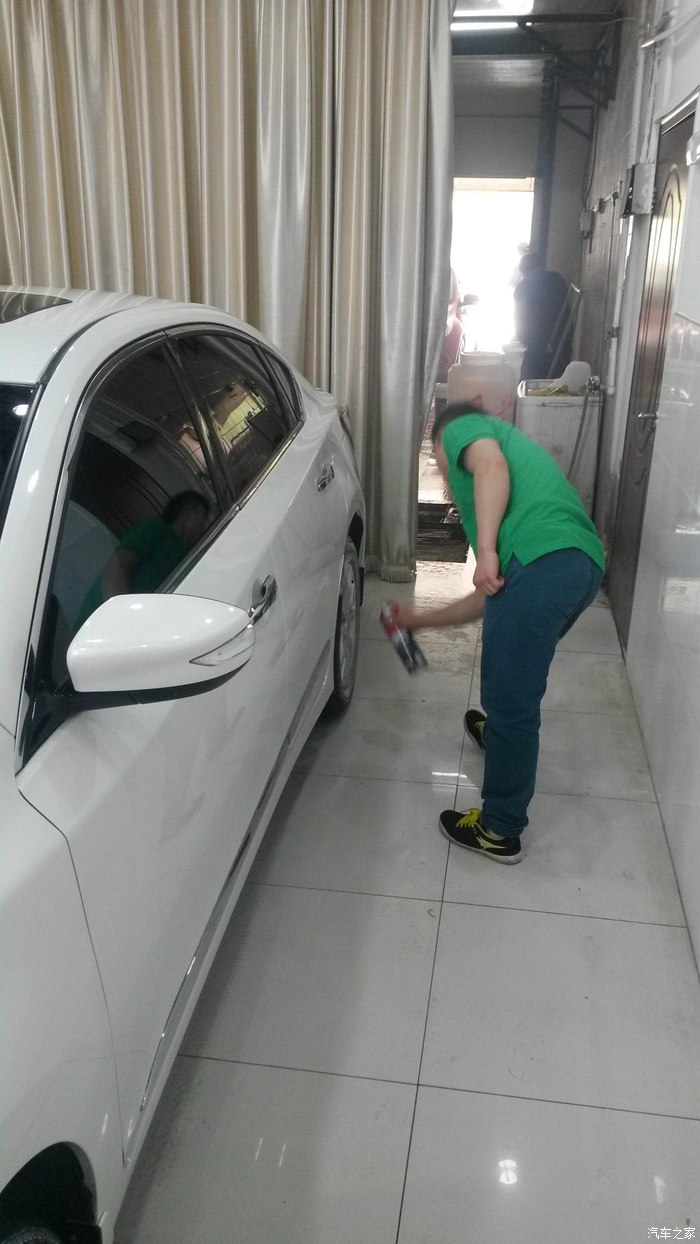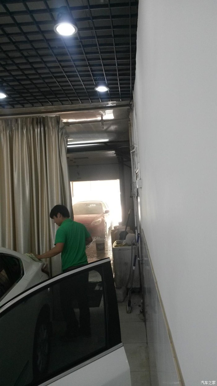 开到室外,4个人一起忙活,擦拭外观,吸尘,擦轮毂,后备箱,大约算了下不到5分钟,此项完成了,到此仅仅完成了普通洗车,精洗部分还没有进行
