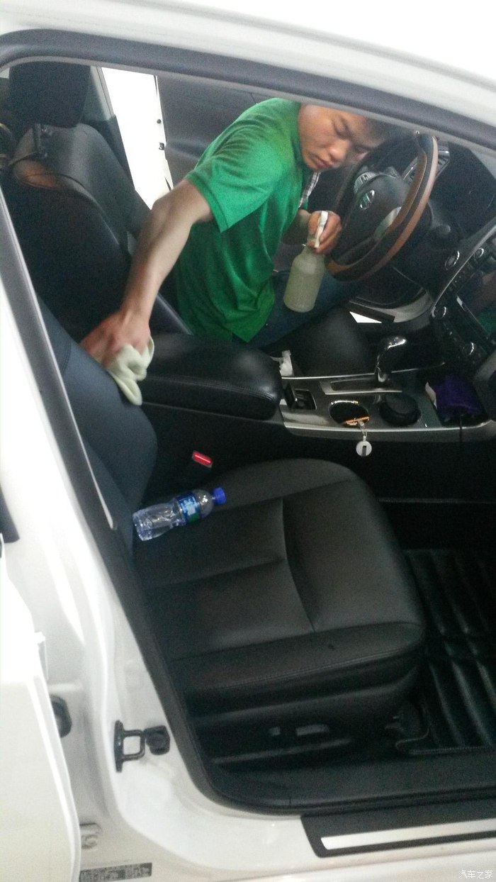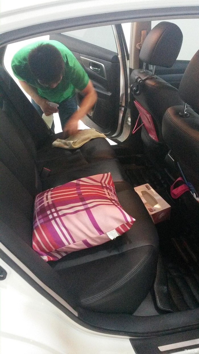 那一边技术已经擦完前排座椅,开始擦拭后排座椅