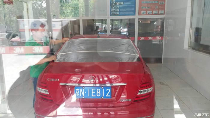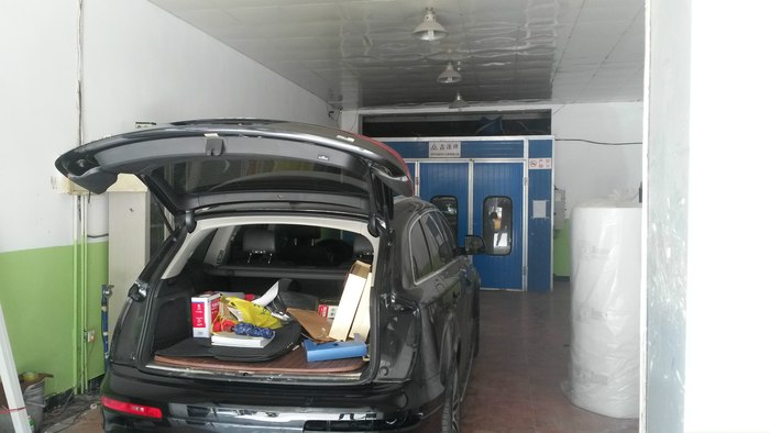 返回精洗车间的途中路过贴膜车间,两个车的防护都弄上了,看样两个车同时进行贴膜,技师够多的啊
