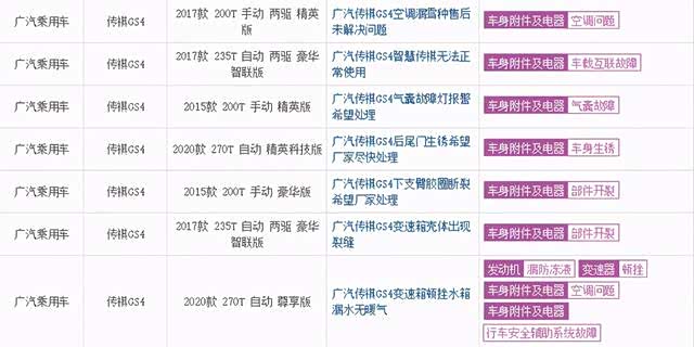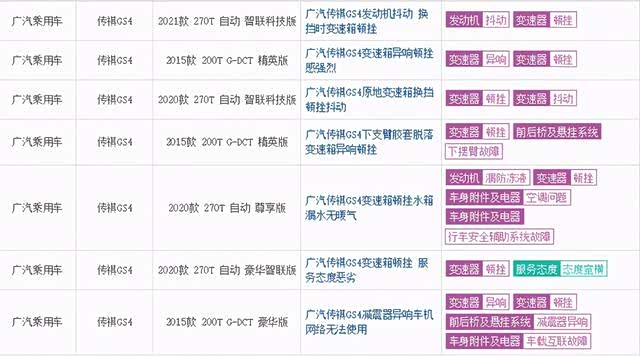同时,传祺GS4的2015款、2017款车型还被投诉部件开裂,耐久性也有待提升。当然,投诉量更多的还是传祺GS4的变速器、发动机,如变速器顿挫、异响以及发动机抖动,涉及车型包括2015款、2020款及2021款车型,看来传祺GS4没有回到巅峰也是事出有因。