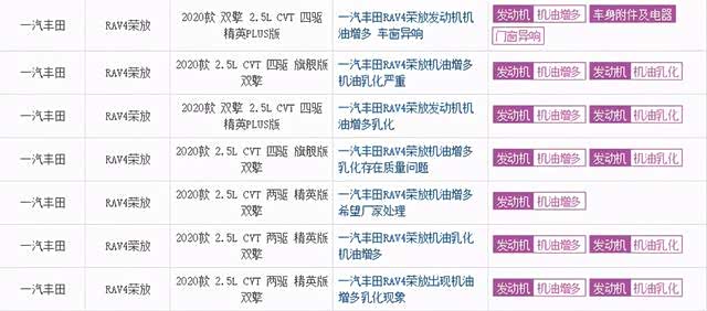 大家都知道丰田车的保值率非常高,而保值率高的原因在于丰田车口碑好、质量稳定。而荣放作为丰田在国内的中流砥柱,其投诉量却高居不下。而丰田RAV4荣放被投诉的理由同样是因为机油增多、机油乳化,并且投诉量还不小,该问题主要集中于2.5L混动车型,此前亚洲龙也出现过机油乳化的问题,看来丰田确实要下心思解决这一问题。