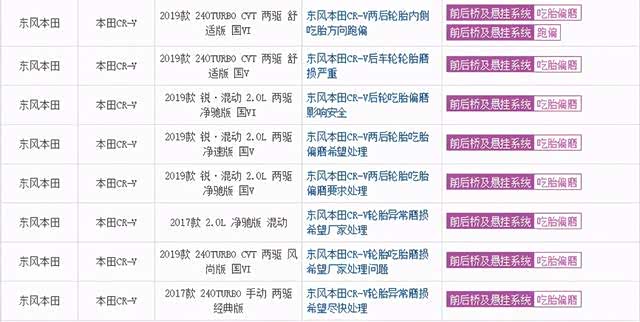 其次,本田CR-V另一项被投诉的原因在于吃胎偏磨,并且投诉量非常大,简单来说就是本田CR-V轮胎跑偏,导致轮胎侧壁磨损严重。吃胎常见于改装车调节倾角之后,但CR-V自身量产车出现问题,或许就是出厂时的调教原因。