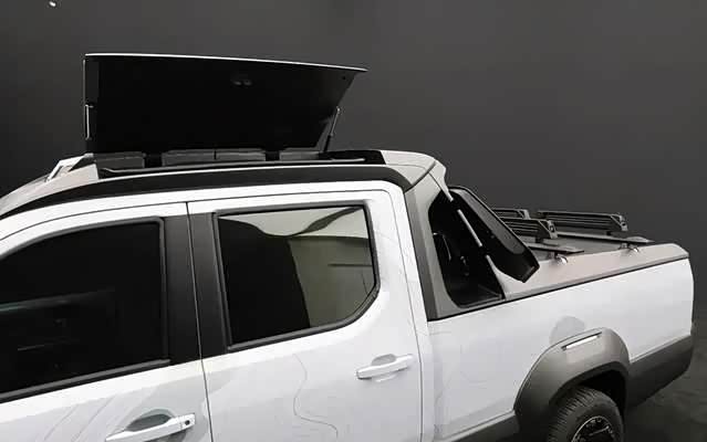 货箱防滚架的部分结构采用一体式设计,侧面还设计了多个单独储物格,据介绍,储物格内将配备单独的吹雪枪,除去粘身的雪花。货箱为封闭式结构,并且配备了电控式卷盖帘,显得很有档次感。货箱上设置了类似车顶行李架的滑雪板固定支架,方便滑雪爱好者随时说走就走。