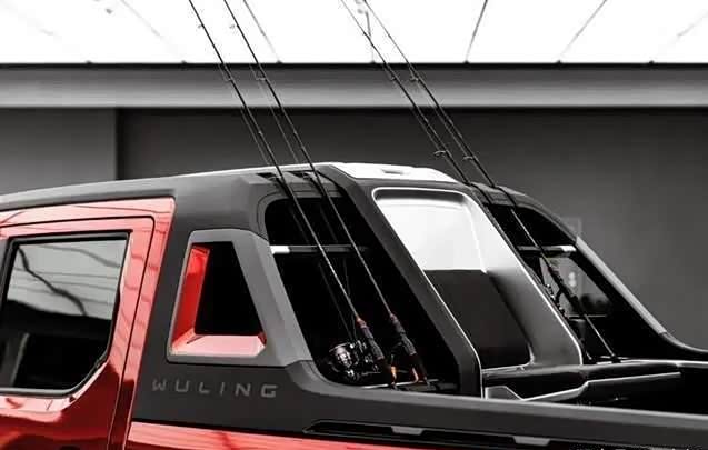 激浪征途顾名思义是跟水有所沾边,然而它车尾并不是放冲浪板,而是专业的垂钓车。激浪征途的后货箱装备了可拆卸的龙门架,架子内设置了折叠座椅以及竿卡槽折叠。重点是还为垂钓者提供了保鲜用的车载冰箱,够专业的吧?