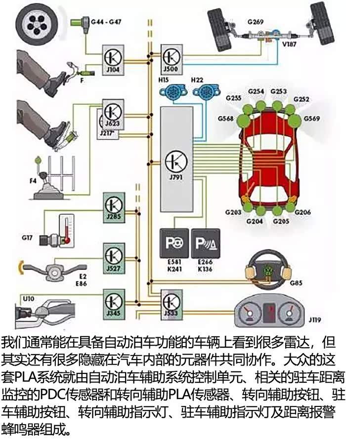 启动自动泊车功能之后,如在理论泊车路境内存在碰撞风险或者与后方已经停好的车辆有碰撞风险,那么ABS/ESP会进行制动直至完全停车。